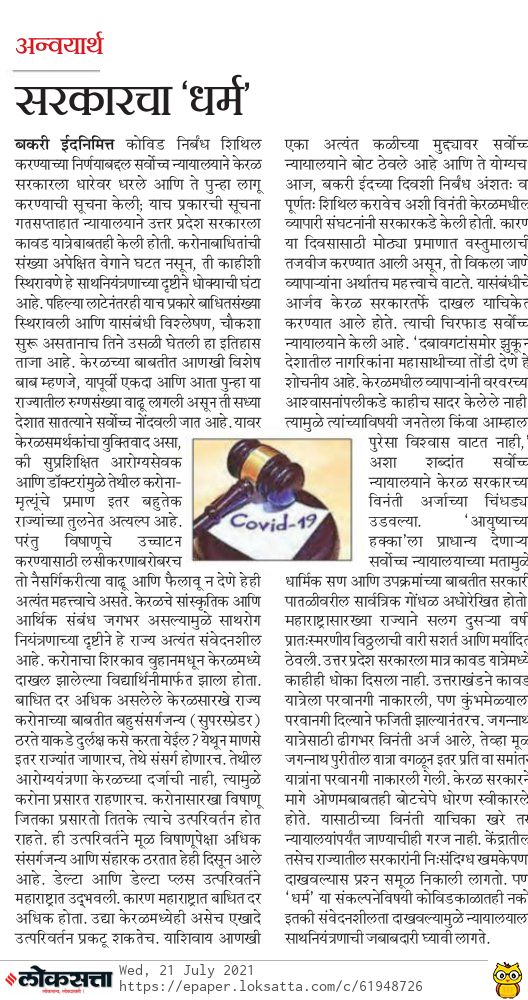 Daily Newspaper Articles 21st July 2021 Posted bythethinkingtreet3July 21, 2021Posted inMarathi Newspapers, newspaperTags:daily newspapers, Divya Marathi, loksatta, marathi newspaper, marathi newspaper articles, upsc marathi Share this:Tweet Share on WhatsApp (Opens in new window) WhatsApp Share on Telegram (Opens in new window) Telegram Email a link to a friend (Opens in new window) Email MoreLike Loading... Related Published by thethinkingtreet3 Writing for self enrichment. Brain with knowledge is true empowerment. Nothing is more satisfying than being a student. View more posts