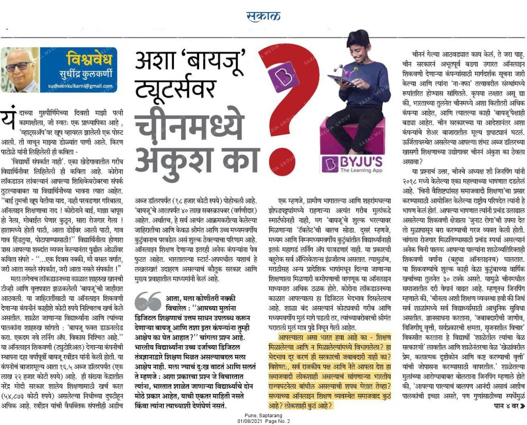 Daily Newspaper Articles 1st August 2021 Posted bythethinkingtreet3August 1, 2021Posted inMarathi Newspapers, newspaperTags:daily newspapers, Daily Sakal, Divya Marathi, lokmat, loksatta, marathi newspaper Share this:Tweet Click to share on WhatsApp (Opens in new window) WhatsApp Click to share on Telegram (Opens in new window) Telegram Click to email a link to a friend (Opens in new window) Email MoreLike Loading... Related Published by thethinkingtreet3 Writing for self enrichment. Brain with knowledge is true empowerment. Nothing is more satisfying than being a student. View more posts