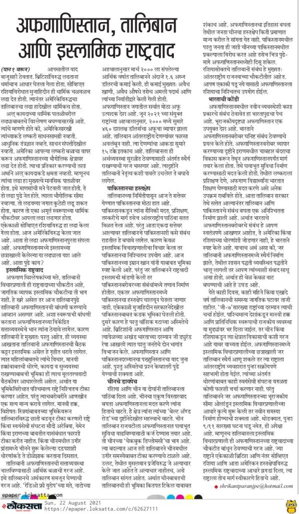 Daily Newspaper Articles 22nd August 2021 Posted bythethinkingtreet3August 22, 2021Posted inMarathi Newspapers, newspaperTags:daily newspapers, In News, marathi newspaper, upsc marathi Share this:Tweet Click to share on WhatsApp (Opens in new window) WhatsApp Click to share on Telegram (Opens in new window) Telegram Click to email a link to a friend (Opens in new window) Email MoreLike Loading... Related Published by thethinkingtreet3 Writing for self enrichment. Brain with knowledge is true empowerment. Nothing is more satisfying than being a student. View more posts