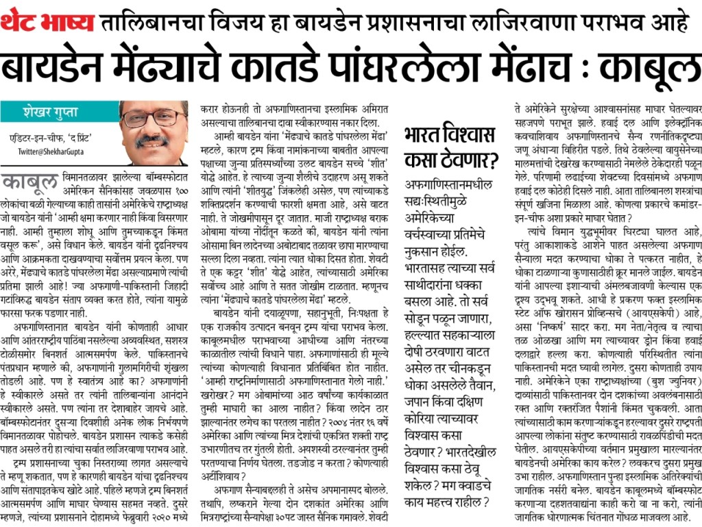 Daily Newspaper Articles 31st August 2021 Posted bythethinkingtreet3August 31, 2021Posted inMarathi Newspapers, newspaperTags:daily newspapers, Divya Marathi, loksatta, marathi newspaper, upsc marathi Share this:Tweet Click to share on WhatsApp (Opens in new window) WhatsApp Click to share on Telegram (Opens in new window) Telegram Click to email a link to a friend (Opens in new window) Email MoreLike Loading... Related Published by thethinkingtreet3 Writing for self enrichment. Brain with knowledge is true empowerment. Nothing is more satisfying than being a student. View more posts