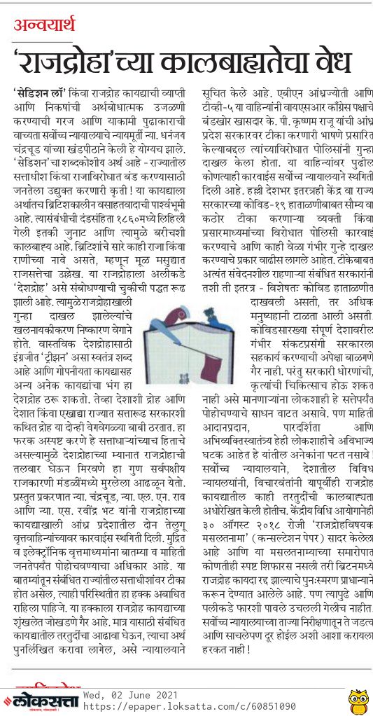 Reviewing Sedition देशद्रोहाच्या मर्यादा परिभाषित करण्याची वेळ